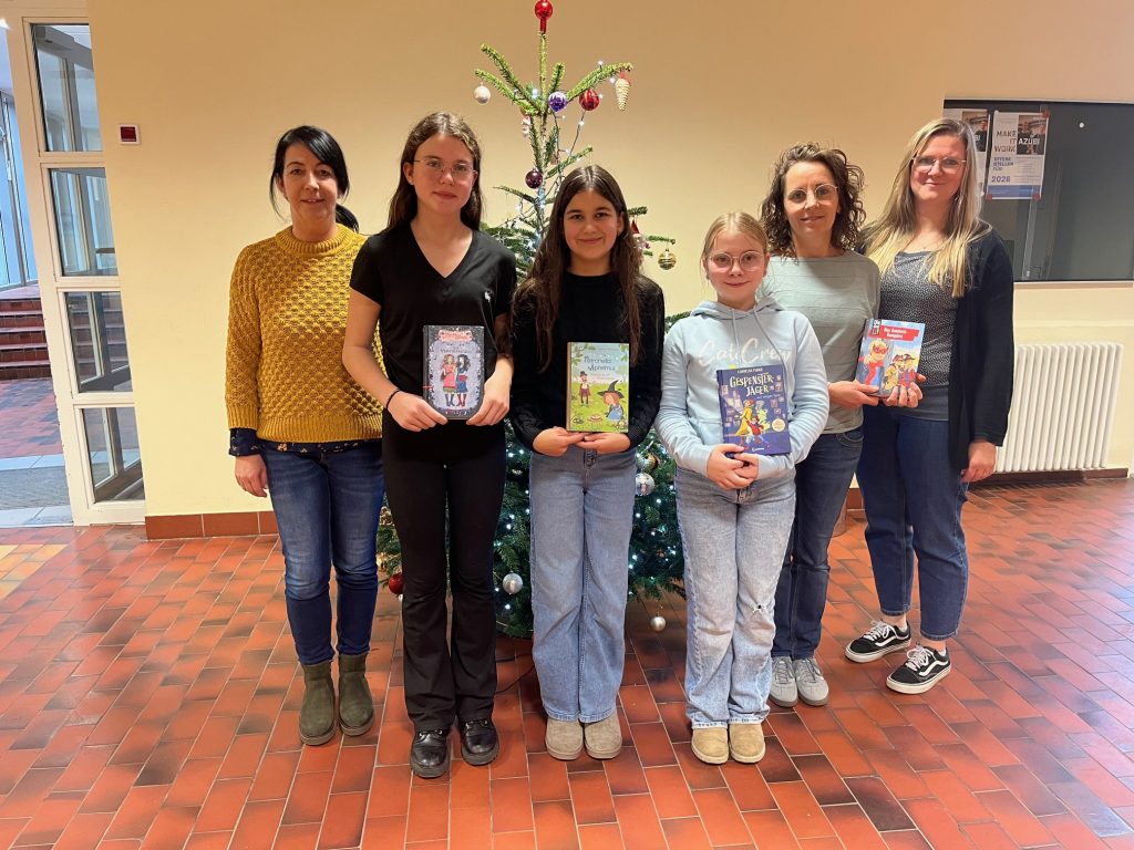 Bei wem sitzen die Betonungen am besten? Wer zieht die Zuhörer*innen am stärksten in den Bann? Die Entscheidung fiel der Jury des Schulentscheids nicht leicht. Beim Vorlesen des ungeübten Textes überzeugte Sophia Weingarten (6a) jedoch durch eine souveräne Leseleistung und setzte sich gegen die anderen Klassensieger Mara Koller (6b) und Marie Mathieu (6c) durch.